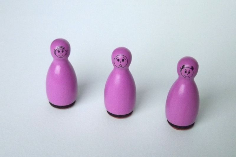 Smajlík, ksichtík, obličej, divící se, překvapený, leknutí - Gumové razítko přilepené na dřevěném držátku tvaru kuželka - vhodné pro výrobu přání, dětské tvoření, do školy, scrapbook, cardmaking, malé, drobné, roztomilé,